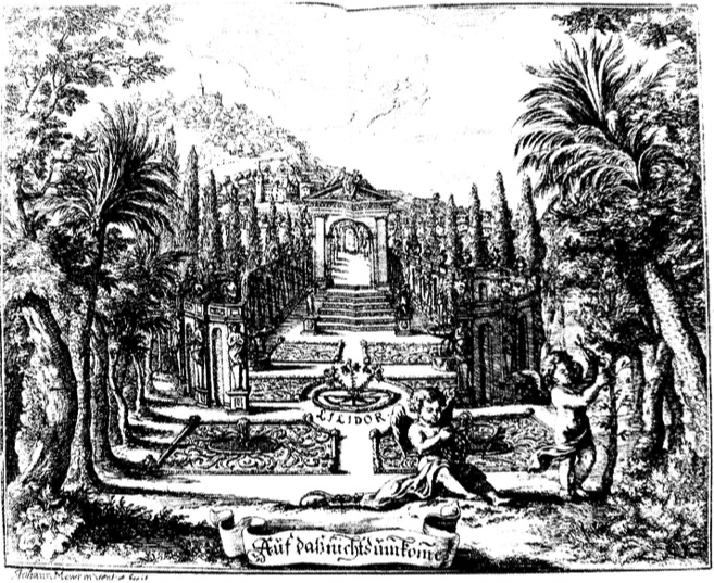 Übrigens war TREU der Sohn des Apothekers in Lauf, eines durch gelehrten Briefwechsel weithin bekannten Pharmazeuten, und selber war er auch bis ins Holländische bekannt. Sein Vater, sei der Kuriosität halber erwähnt, verfaßte 1680 eine Schrift zur Verteidigung des Laufer Bieres, das ins Gerede gekommen war, und die lebensmittelchemischen Untersuchungen dazu waren zum Teil von dem Nürnberger JOHANN GEORG VOLCKAMER vorgenommen worden. Dieser, von HARSDÖRFER unter dem Namen HELIANTHUS als zehntes Mitglied in den Orden aufgenommen, war ein bekannter Arzt, Botaniker und Astronom. Einer seiner Söhne wiederum, JOHANN CHRISTOPH VOLCKAMER, war der Verfasser des bekannten botanischen Werkes "Nürnbergische Hesperide" , erschienen 1708, worin er alle damals bekannten Zitrusfrüchte und die Gartenanlagen der Nürnberger Reichen, in denen sie gezogen wurden, beschreibt und abbildet. Mit diesen Hesperidengärten konnte und sollte der Irrhain natürlich nicht wetteifern. Aber man sieht schon, wie der Orden von Anfang an in die Kultur und die naturwissenschaftlichen Errungenschaften der Gelehrtenschicht Nürnbergs verwoben war. Darum stammt das folgende Gelegenheitsgedicht nicht nur zufällig von einem Pegnesen.