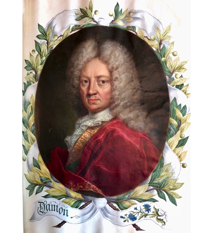 Eine Sitzung beginnt mit der Begrüßung durch den Vorsitzenden. DAMON II. erhebt sich. Auf der Abbildung, die ihn, Professor MAGNUS DANIEL OMEIS, als den zum zweitenmal amtierenden Rektor der Altdorfer Universität zeigt, trägt er eine lange, gepuderte Perücke. Ob er sie auch an jenem Julitag getragen hat, ist fraglich; das wäre er sich kaum als Präses des Blumenordens schuldig gewesen, denn hier spielte man eigentlich die Rollen einer poetischen Schäfergesellschaft. Schäferkostüme sind jedoch im Archiv des Pegnesischen Blumenordens nicht überliefert, lediglich weißseidende Armbänder. Man darf den Herren aber gönnen, daß die Kleiderordnung bei einer Versammlung im Irrhain nicht allzu streng war; an breitkrempige Hüte und offene Hemdkragen nach den Abbildungen von dichtenden Schäfern in den damals veröffentlichten Gemeinschaftswerken des Ordens wäre zu denken,