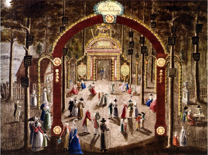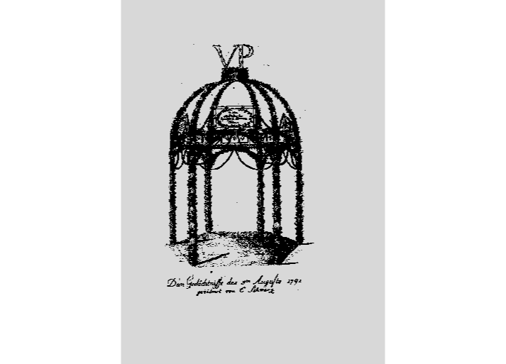 Am 3. August 1791 fand im Irrhain eine Feier zu Ehren des Präses Panzer statt. Dazu war ein Laubentempelchen aufgebaut, der "Tempel der Freundschaft", an welchem Inschriften angebracht waren. Abends wurden das Tempelchen und der "Kirchhof" beleuchtet. Das hatte Konrad Grübel eingerichtet, der Stadtflaschnermeister. Damit empfahl er sich für die weit aufwendigere Illumination zur Jubiläumsfeier 1794.