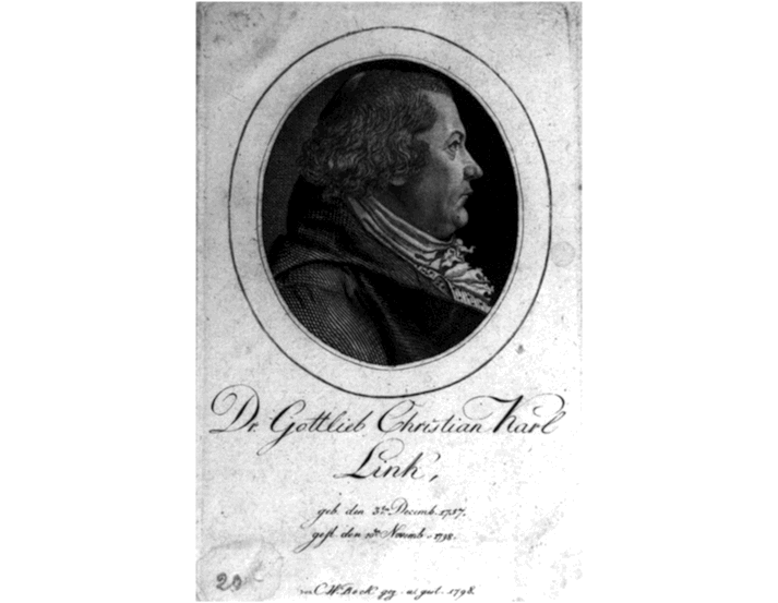 Am 28. April 1779 nahm sich Link der Theorie der Sprachpflege an und hielt Eine Vorlesung über Sprache, und ihren Einflus in Sitten und Denkungs-Art der Menschen, [...] Den Zusammenhang einmal in dieser Richtung zu sehen, war damals gewiß noch außerordentlich, wenn erst im nächsten Jahrhundert eine autoritative Stellungnahme dazu durch Wilhelm von Humboldt erfolgte.