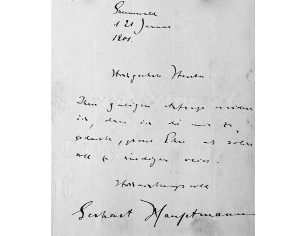 Gerhart Hauptmann macht es kurz. Er ist auf der Höhe seiner Kräfte und seines Ruhms und möchte kein Spielverderber sein.