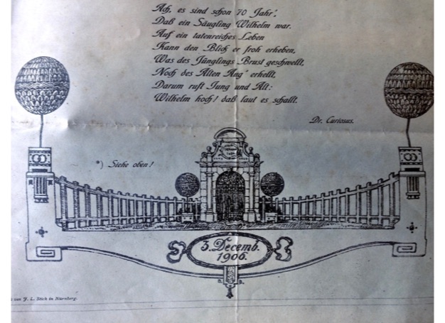 Auf Ihre gef. Anfrage theile ich Ihnen ergebenst mit, daß die in meinem „Sturmgesellen Sokrates“ enthaltene Bezugnahme auf den Pegnitzischen oder — wie Sie wünschen — „Pegnesischen“ Blumenorden keinerlei satirische Spitze gegen den z.Z. bestehenden Verein gleichen Namens in sich birgt, dem als Ehrenmitglied anzugehören ich die Ehre habe.