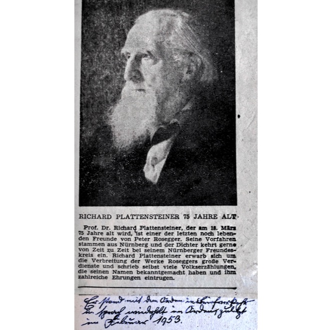 Prof. Dr. Richard Plattensteiner […] den 30. Dezember 1952