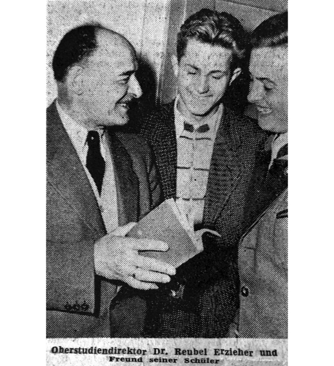 Heute feiert Oberstudiendirektor Dr. Günter Reubel seinen 65. Geburtstag. In München, seiner Geburtsstadt, absolvierte er seine Studienzeit, Drei Jahre war er anschließend als Hauslehrer in Italien tätig und diese Jahre in der Nähe von Florenz zählen zu den schönsten seines Lebens, so berichtete uns der Jubilar. […] Den Jahren als Studienrat im Nürnberger Realgymnasium folgte 1928 seine Ernennung zum Studienprofessor und zum Leiter der Anstalt. 29 Jahre später wurde Dr. Reubel als Oberstudiendirektor 1948 mit der Leitung des Neuen Gymnasiums beauftragt. […]